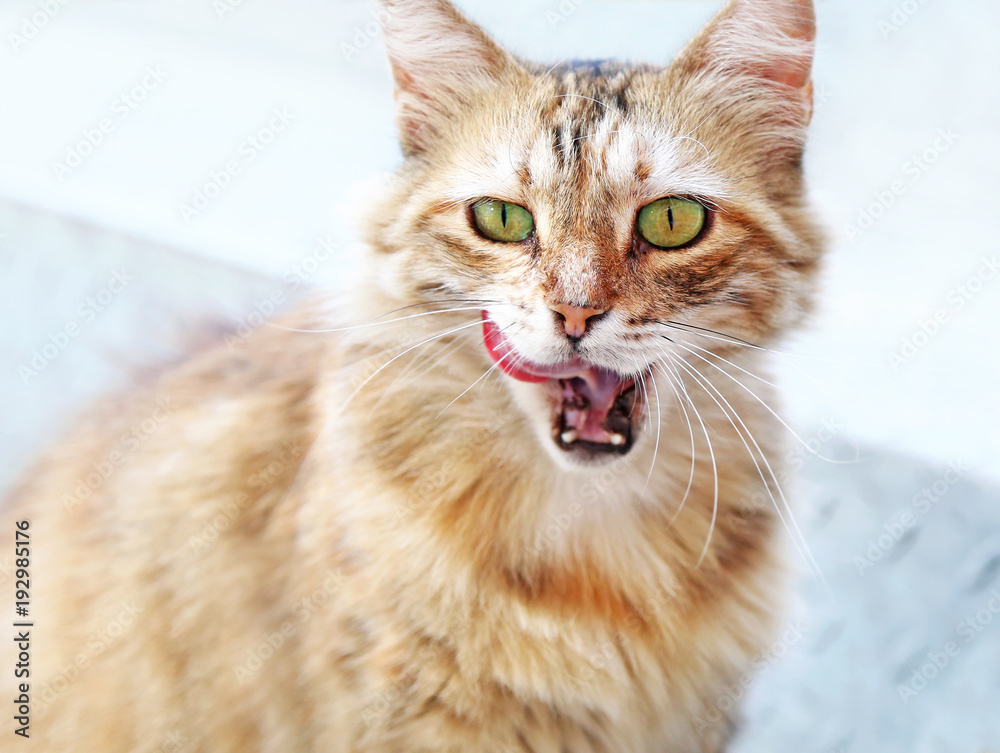 Beautiful Blonde Cat With Open Mouth And The Tongue Out Stock Photo Adobe Stock